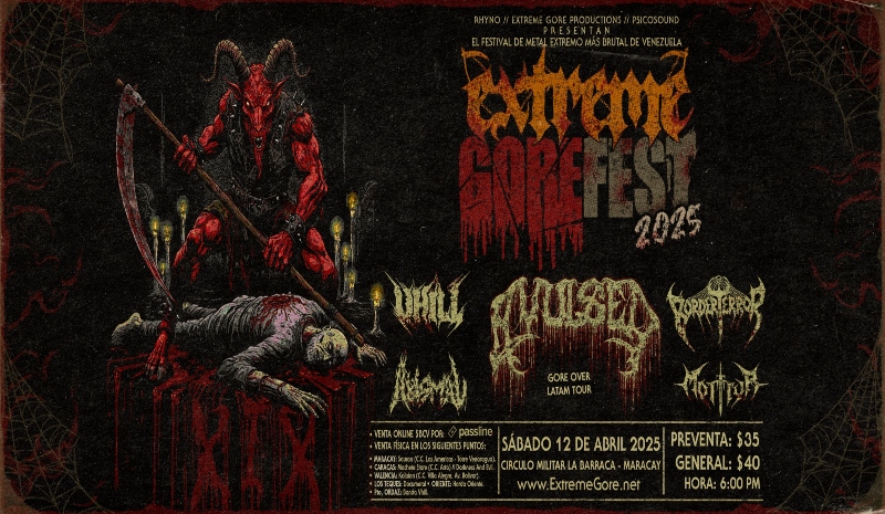 Avulsed, ícono del Death Metal mundial, será el gran protagonista del XIX aniversario del Extreme Gore Fest, el festival más importante del Rock y Metal Extremo en Venezuela. Tras 25 años de ausencia, la legendaria banda española regresa al país en el marco de su gira «Gore Over Latam Tour 2025» que está recorriendo cinco países sudamericanos (Colombia, Chile, Ecuador, Perú y Venezuela) organizada por Extreme Gore Productions.