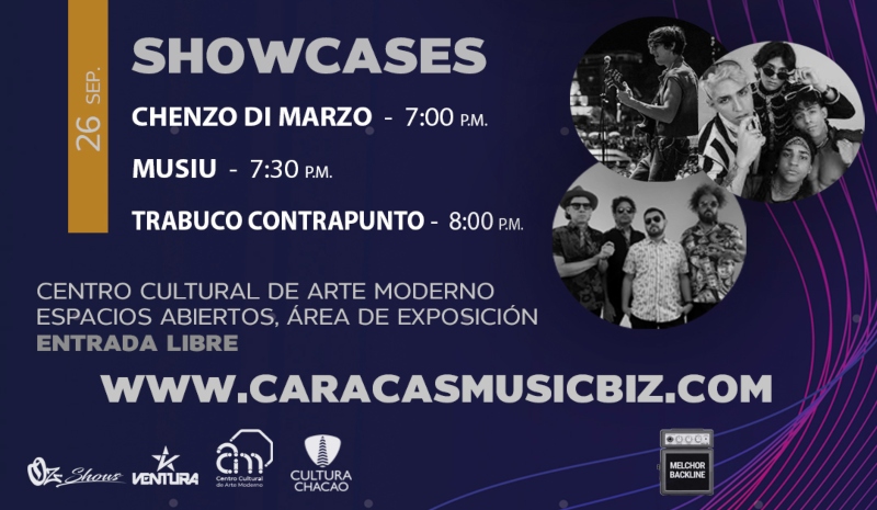 Asimismo, en los espacios abiertos del CCAM talentos emergentes se mostrarán en los showcases, tocando el turno a Conde, Marco y Marilyn Chirinos, el día 25. El viernes 26 de septiembre, harán lo propio Chenzo Di Marzo, Musiu Band y Trabuco Contrapunto.