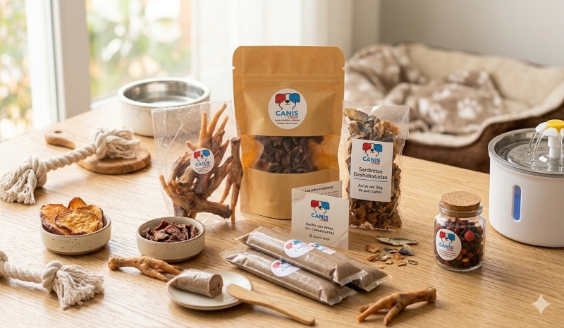 La oferta de Canis_Dolce se distingue por su enfoque en la salud y el bienestar animal, ofreciendo una variedad de snacks elaborados con ingredientes naturales. Entre sus productos destacan las galletas de carne y pollo, los populares «churus» tanto para gatos como para perros, y las innovadoras gomitas de colágeno, diseñadas específicamente para fortalecer la vitalidad de los caninos de edad avanzada. Asimismo, la marca cuenta con una línea de productos deshidratados que incluye orejitas de cerdo, patitas de pollo y mollejitas, opciones que garantizan una nutrición libre de aditivos químicos para el disfrute de los peludos de la casa.