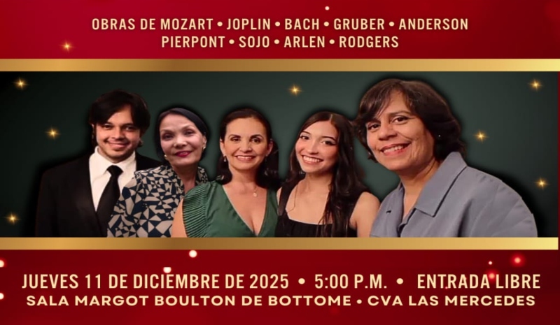 La invitación es para el 11 de diciembre de 2025 a las 5:00 p.m., en la Sala Margot Boulton de Bottome del Centro Venezolano Americano, ubicado en la Avenida Principal de Las Mercedes, Caracas. La entrada es gratuita.