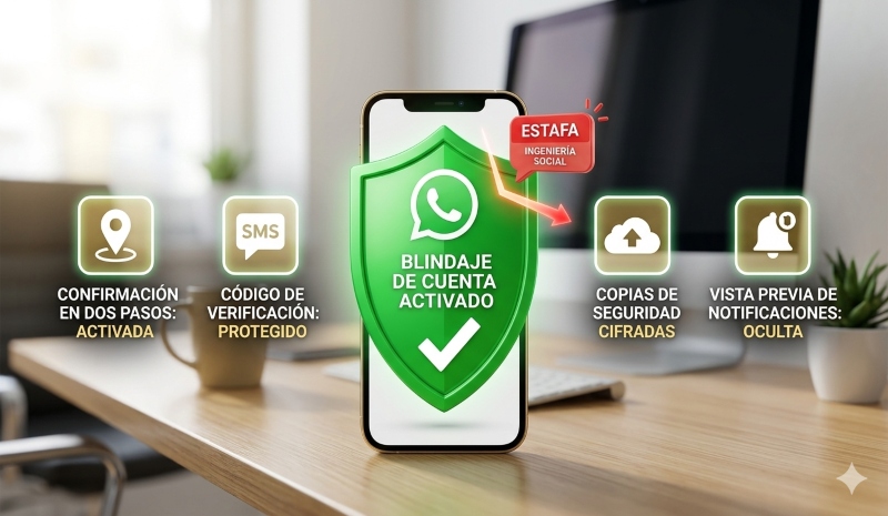 - Falta de verificación en dos pasos: No activar esta capa extra es el error más común; sin ella, un atacante puede tomar control total de la cuenta en segundos si obtiene el código SMS mediante engaños.