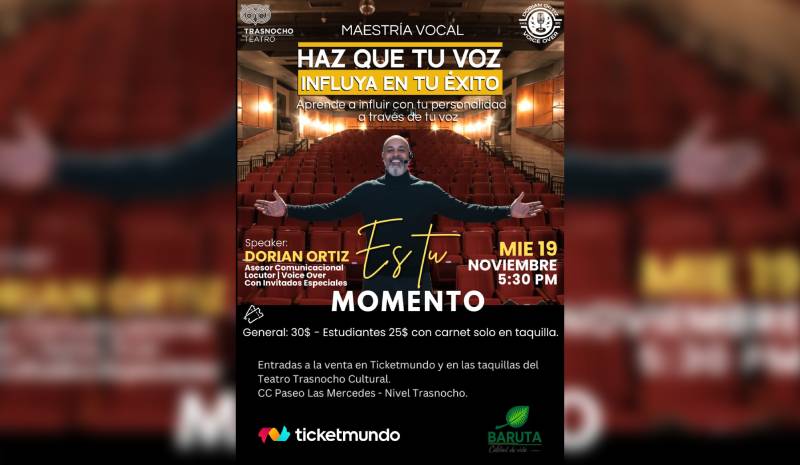 Esta conclusión es el tema central de la «MAESTRÍA VOCAL: HAZ QUE TU VOZ INFLUYA EN TU ÉXITO», un encuentro formativo que se llevará a cabo el próximo miércoles 19 de noviembre a las 5:30 de la tarde en el Teatro Trasnocho, ubicado en el Centro Comercial Paseo Las Mercedes.