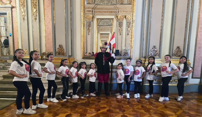 · En el Palacio de Gobierno, recorrieron los salones oficiales y fueron recibidas con admiración y ternura.