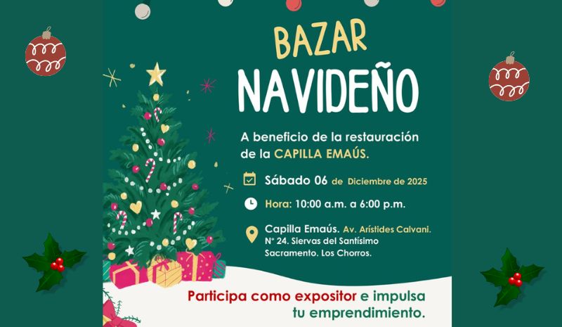 La congregación venezolana Las Siervas del Santísimo Sacramento convoca a la comunidad a participar en su primer Bazar Navideño que se celebrará el próximo sábado 6 de diciembre, una jornada solidaria que busca recaudar fondos esenciales para la reparación y el óptimo funcionamiento de la querida Capilla Emaús, ubicada en la avenida Arístides Calvani, Los Chorros en la ciudad de Caracas